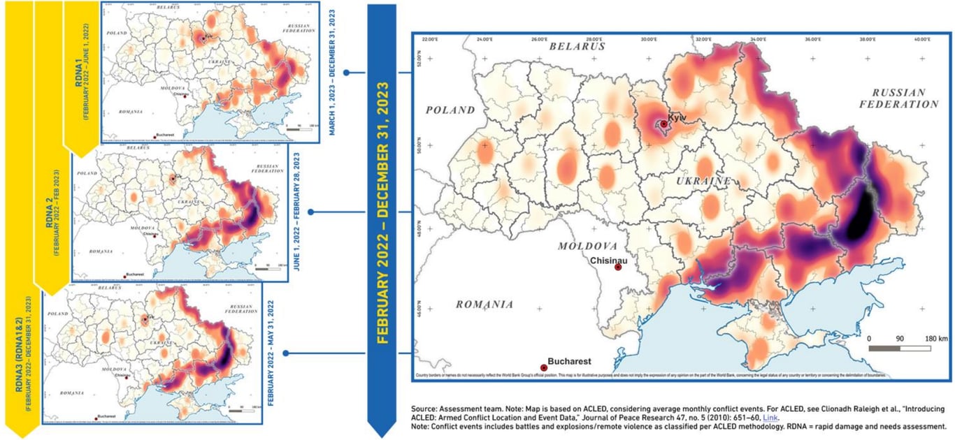 "Оценка RDNA3, которая охватывает нанесенный ущерб за почти двухлетний период с момента полномасштабного вторжения России в Украину 24 февраля 2022 года по 31 декабря 2023 года, демонстрирует, что прямой ущерб в Украине достиг почти 152 миллиардов долларов США", — говорится в сообщении.